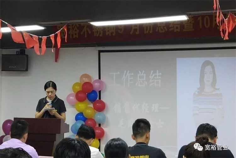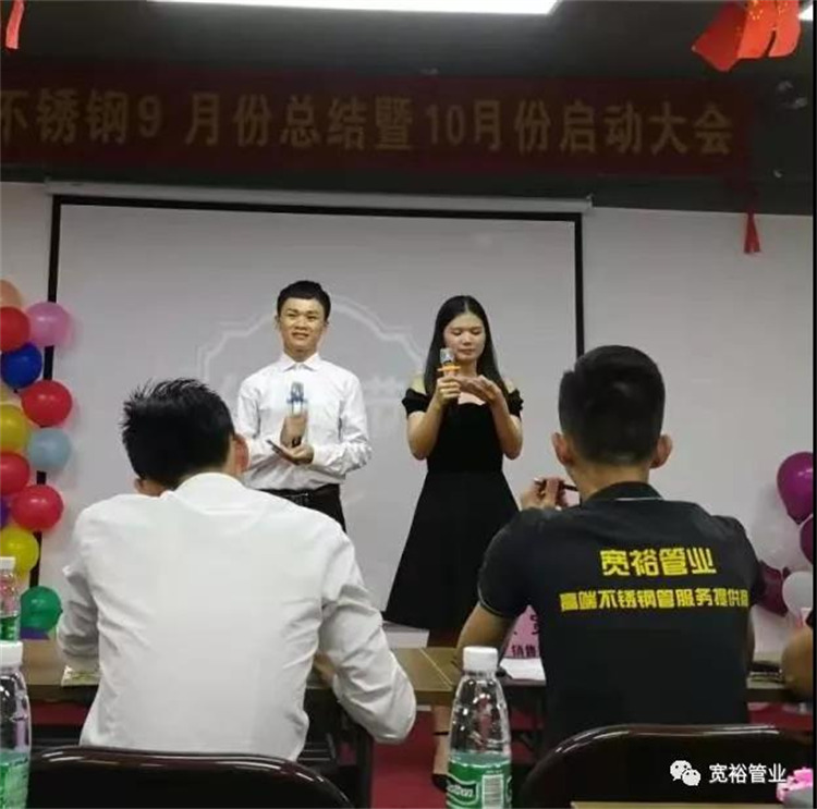 為總結(jié)經(jīng)驗,鼓舞士氣,更好的迎接未來挑戰(zhàn),佛山寬裕不銹鋼于2019年10月8日18點(diǎn)30分,在總部三樓會議室順利召開了9月份總結(jié)暨10月啟動大會, 共同開啟新的征程。