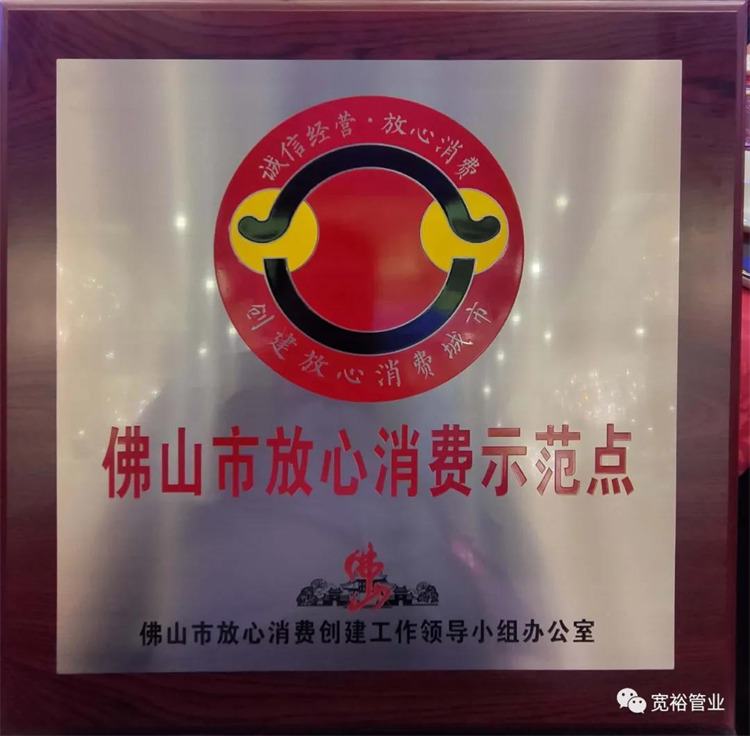 雙喜臨門|祝賀寬裕榮獲廣東省不銹鋼品牌優(yōu)秀之星,“放心消費示范點”榮譽